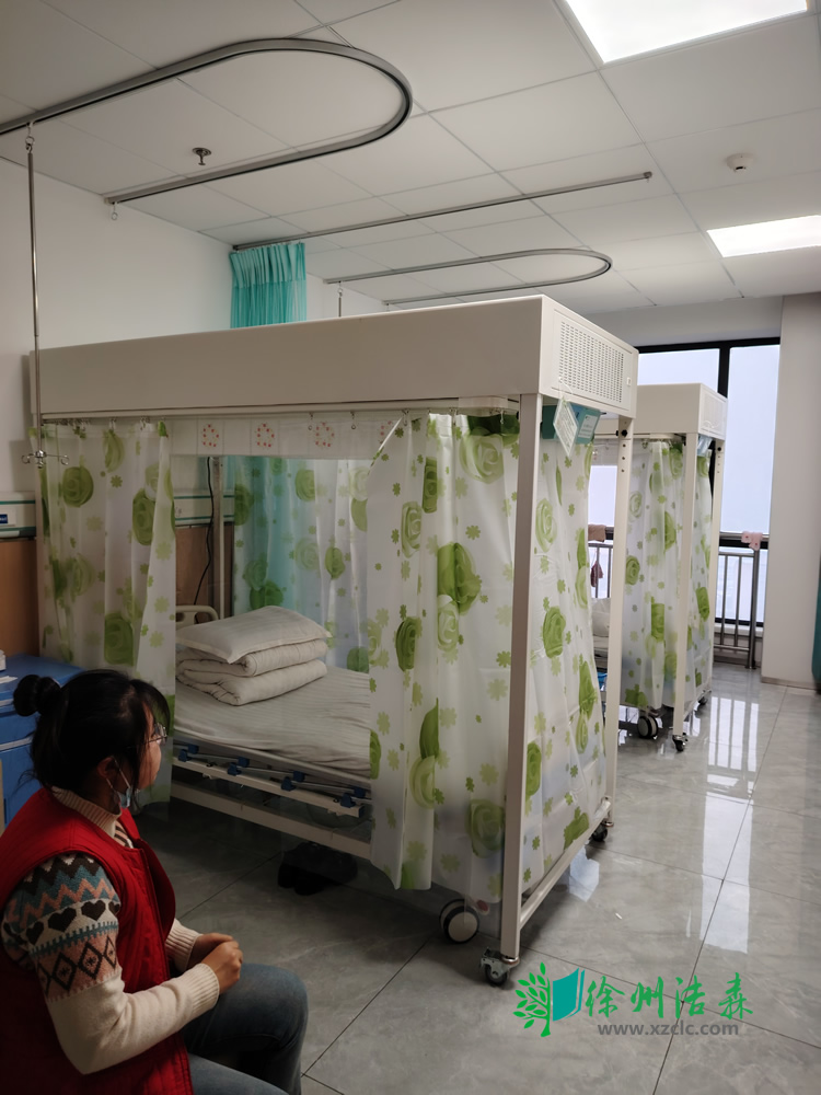 漢中醫(yī)院血液科采購(gòu)的兩臺(tái)最新款的層流床(層流病床),做工更加精細(xì),配有空氣監(jiān)測(cè)系統(tǒng),可實(shí)時(shí)查看罩內(nèi)空氣質(zhì)量。萬(wàn)向腳輪,使用移動(dòng)方便。