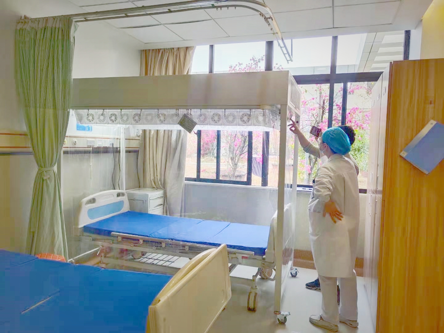潔森環層流床/單人無菌室產品新升級_四級過濾新升級層流床(單人無菌室)垂直款_多重過濾消毒_四級過濾_罩內沉降菌≤0.5個CFU/平皿_滅菌率>99.99%_紫外線殺菌燈;功能多_...
