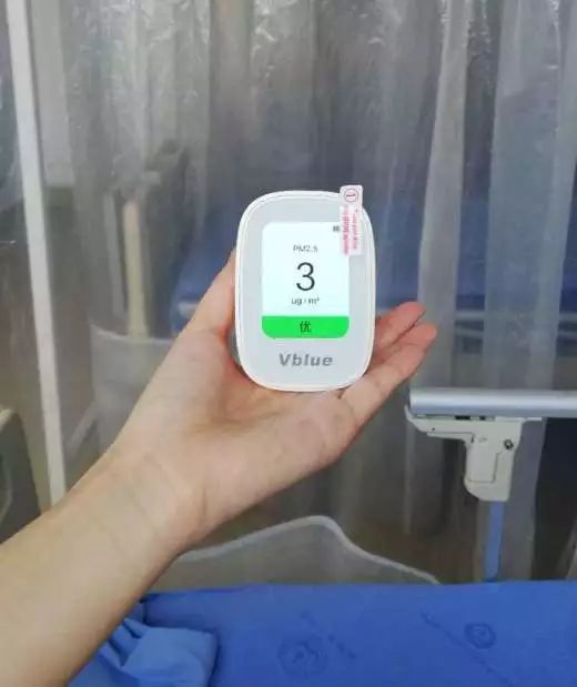 而層流床(單人無(wú)菌室)運(yùn)行時(shí)頂部的風(fēng)機(jī)吸入環(huán)境空氣,經(jīng)光觸媒空氣凈化消毒系統(tǒng)濾過(guò)成為潔凈無(wú)菌空氣,再以層流的方式送回,并使床內(nèi)區(qū)域保持正壓,防止外面塵埃粒子進(jìn)去,用儀器測(cè)得PM2.5結(jié)果如下:
